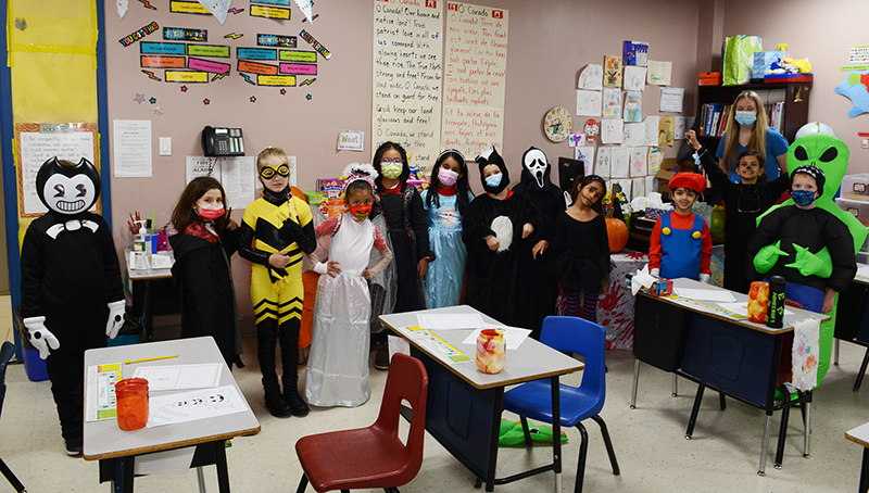 Wearing Halloween costumes and masks, Bond students enjoyed the outdoor parade safely along the sidewalk between the front door and cafeteria door. Parents were welcome to take photos of their children in the schoolyard or to watch the event streaming live on YouTube. Read More